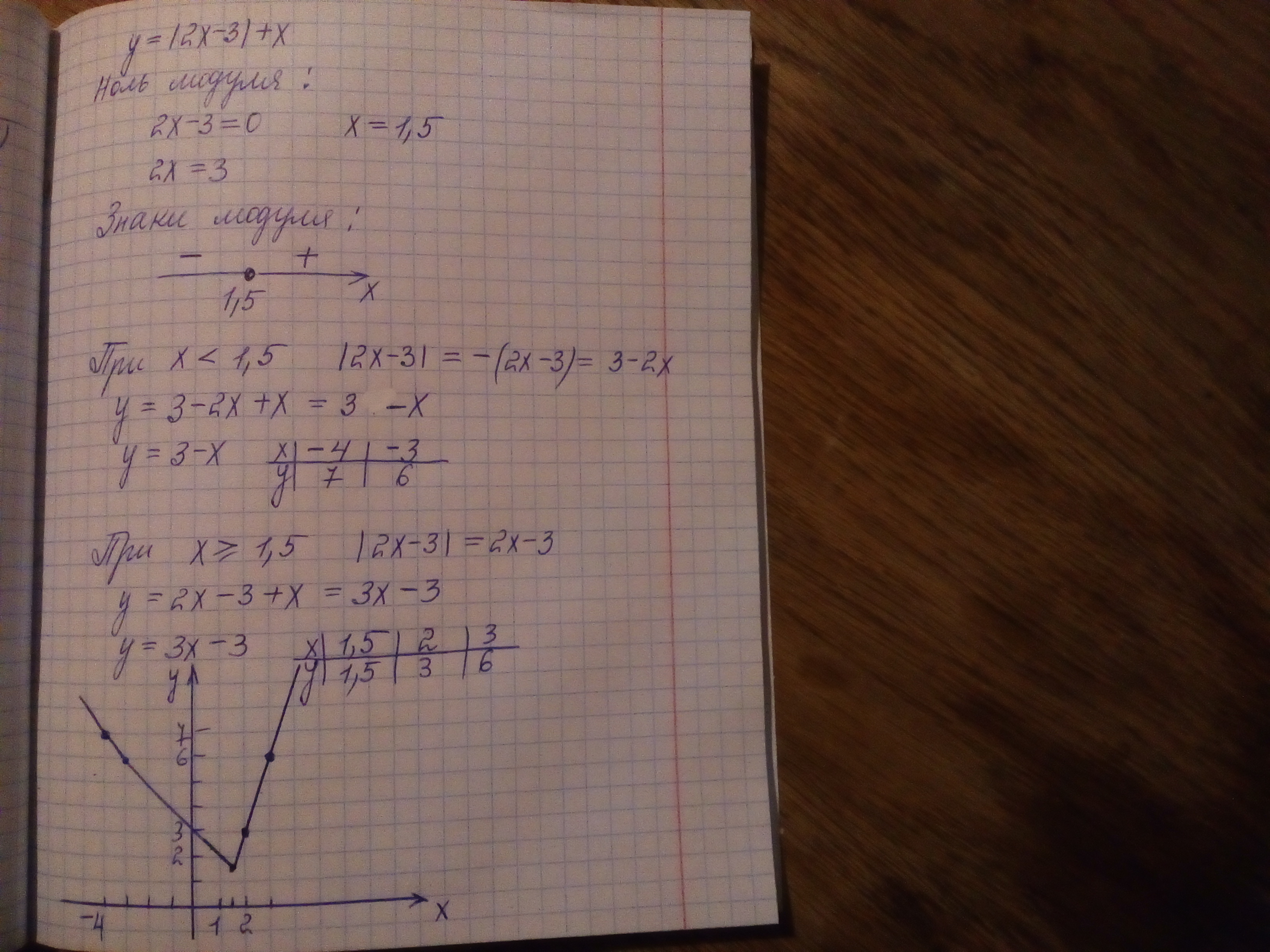 Построить график функции y=|2x-3|+x пожалуйста решите эту чушь я не понимаю какой там правильный ответ