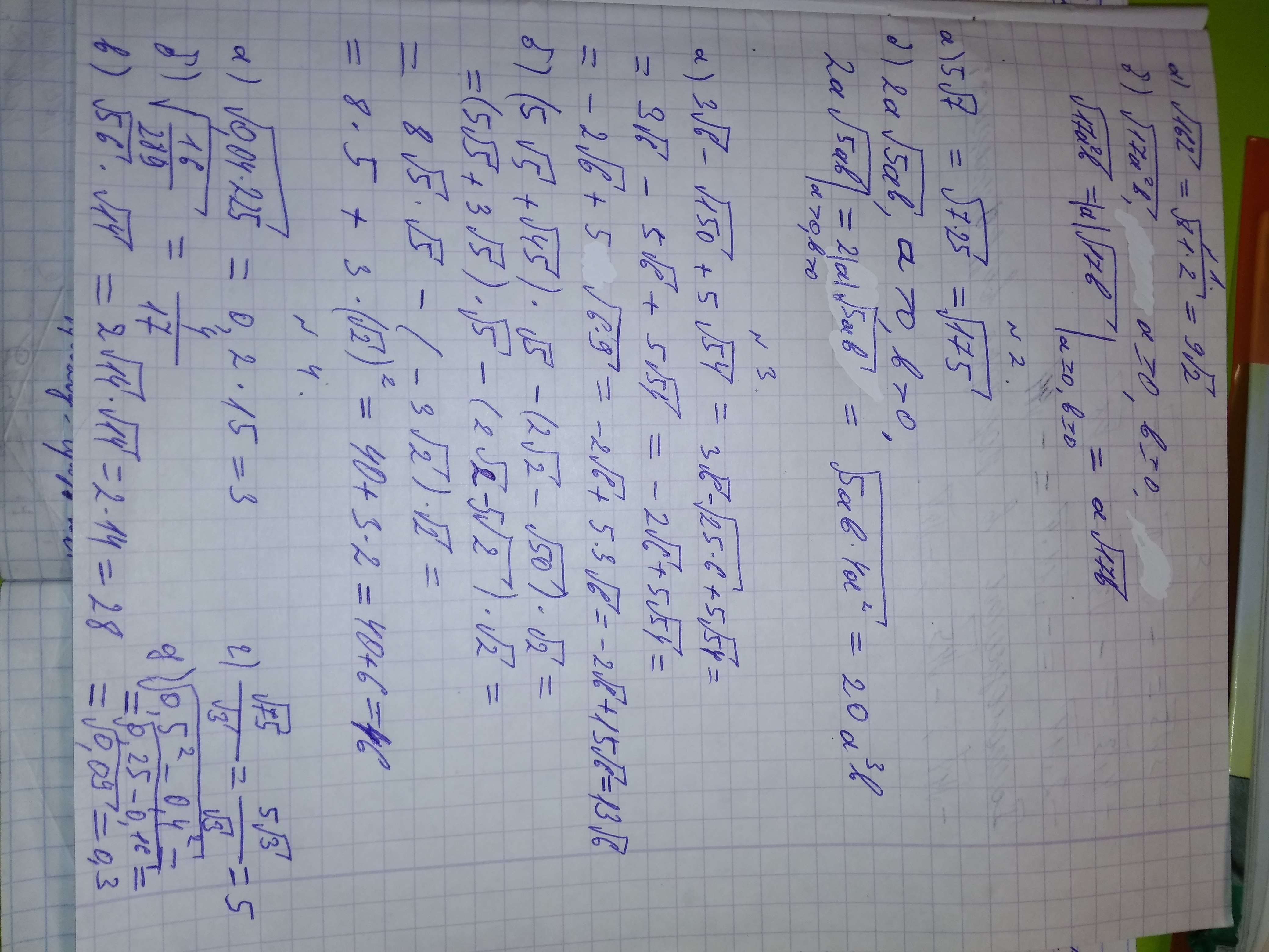 2)корень из 175; корень из 20а куб б