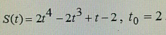 tt v(t)=S'(t)=8t^3-6t^2+1 \ \ v(2)=8 cdot 8 - 6 cdot 4+1=64-24+1=bf{41} \ \ \ tt a(t)=v'(t)=24t^2-12t \ \ a(2)=24 cdot 4 -12 cdot 2=96-24=bf 72