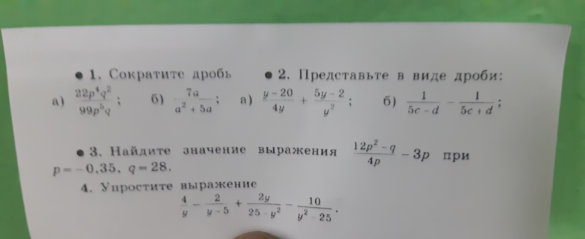 В последнем можно пойти дальше, вынесем за скобки - 20. И в скобках будет (у+5). Тогда можно сократить. В итоге ответ: - 20/(у^2-5у)