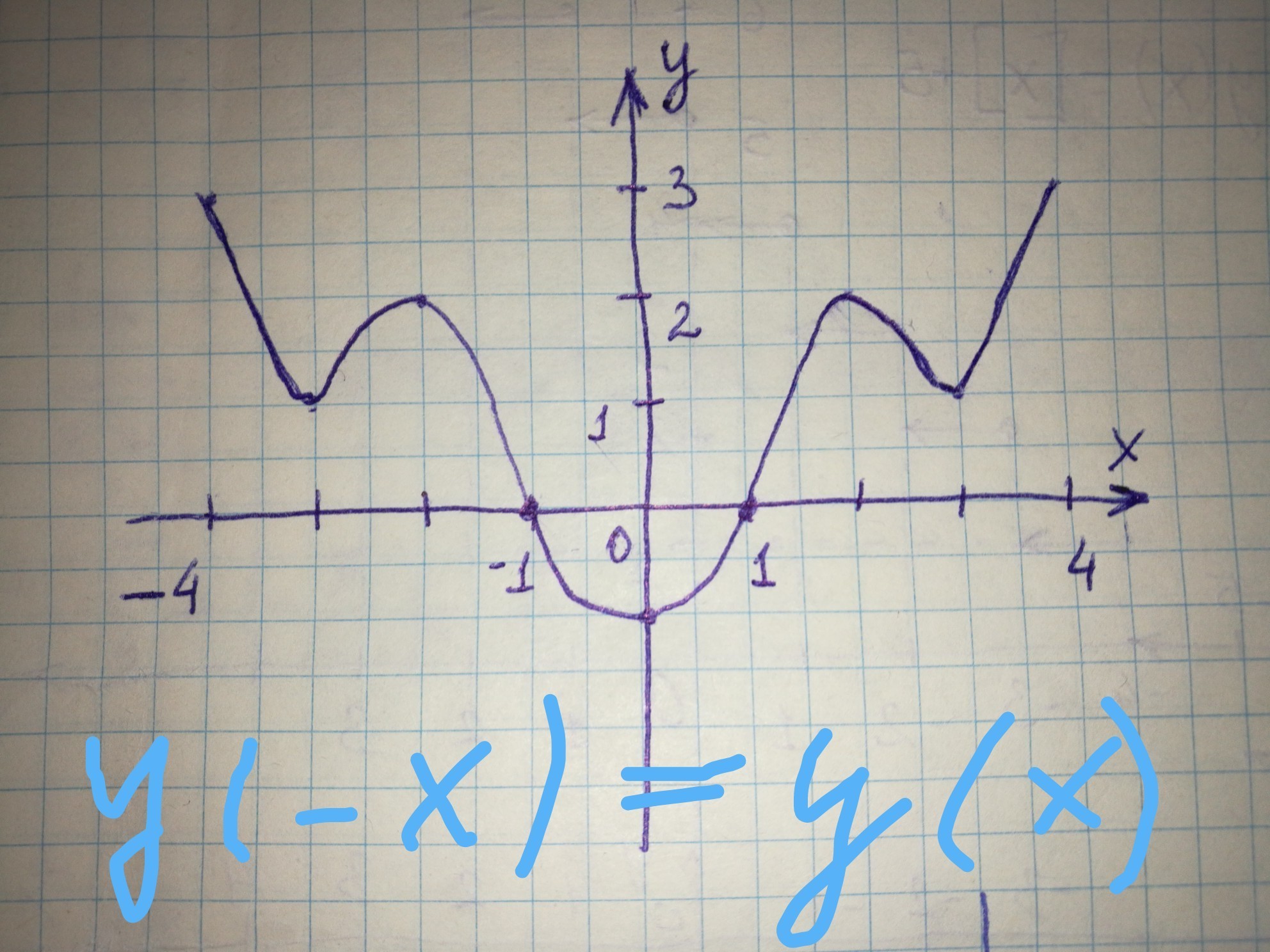 Для чётной функции справедливо у(-х)=у(х)