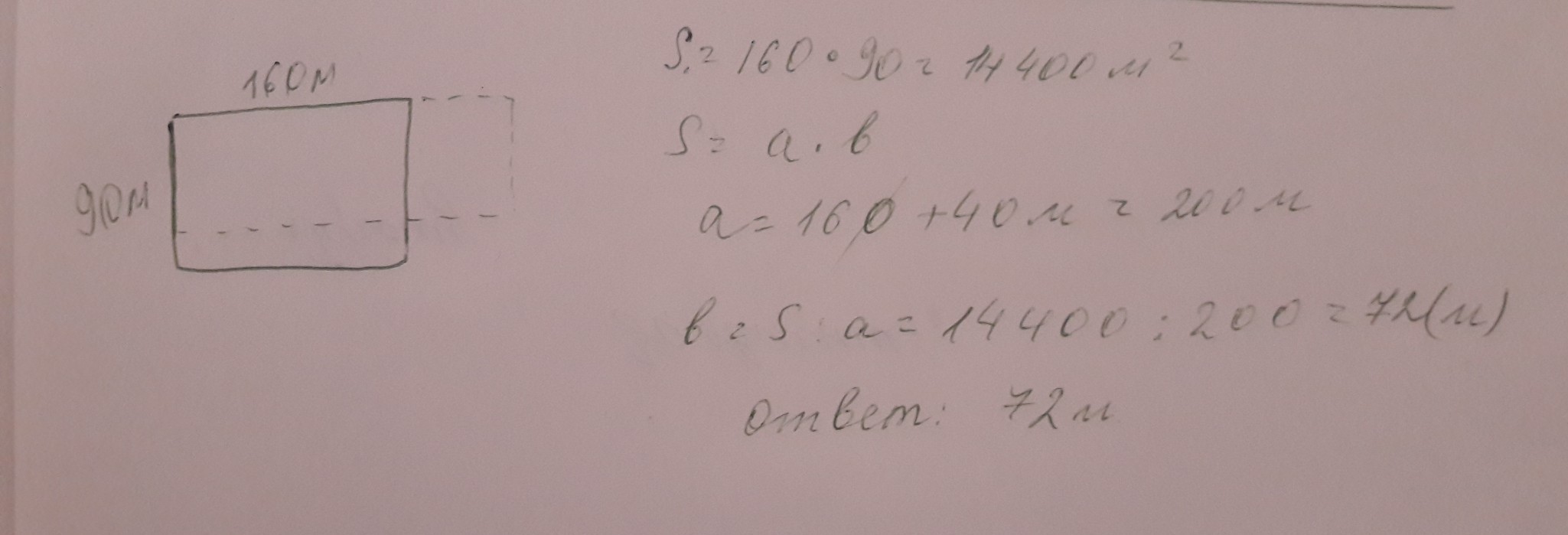 участок прямоугольной формы длина которой 160 м ширина 90 м обменяли на участок равной площади длина второго участка на 40 м больше длины первого участка найдите ширину второго участка