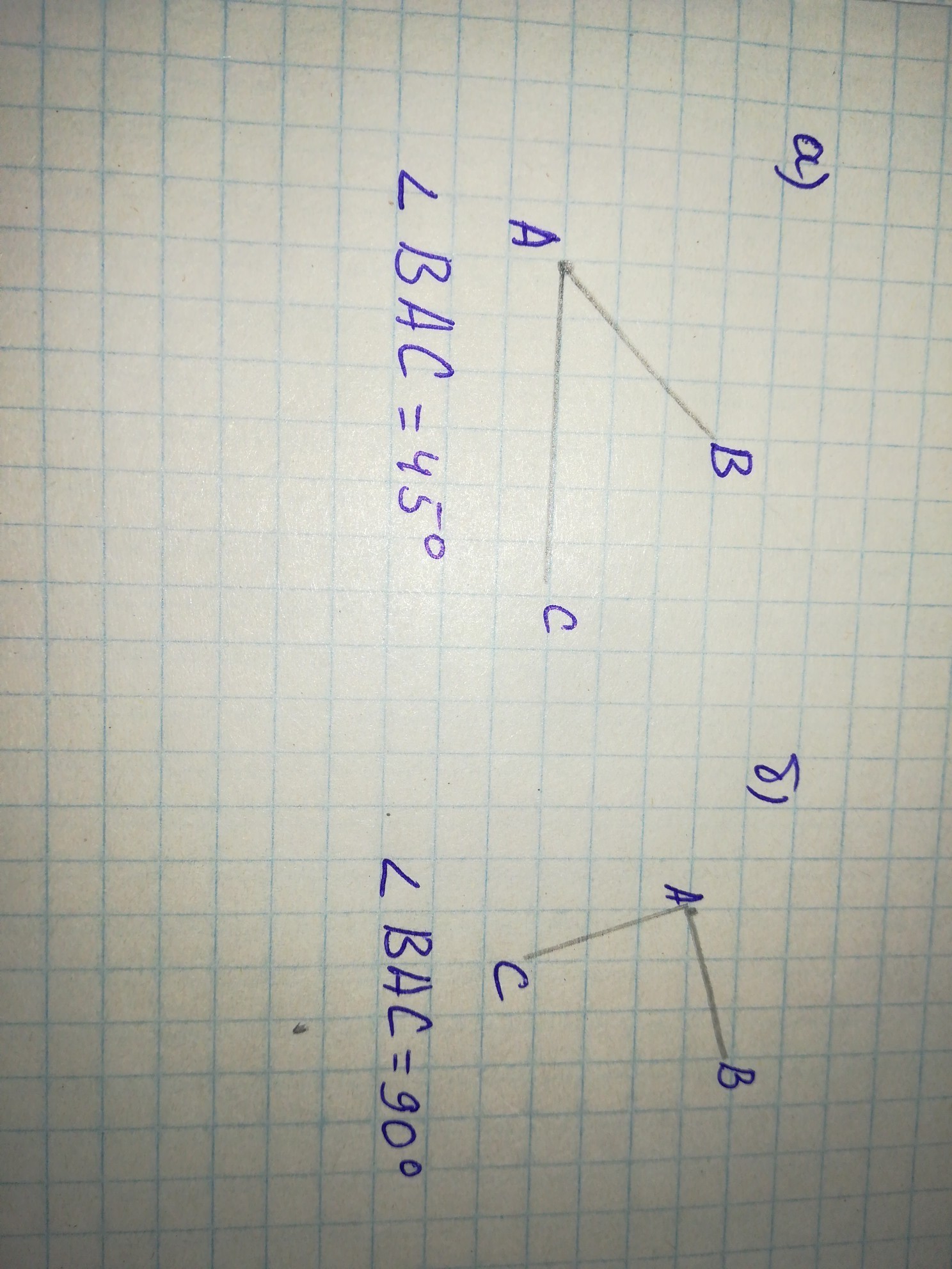 на клеточной бумаге изобразите луч АВ как показано на ресунке 6. 4 от луча АВ Отложите угол ВАС, РАВНЫЙ а)45 градусов б)90 градусов