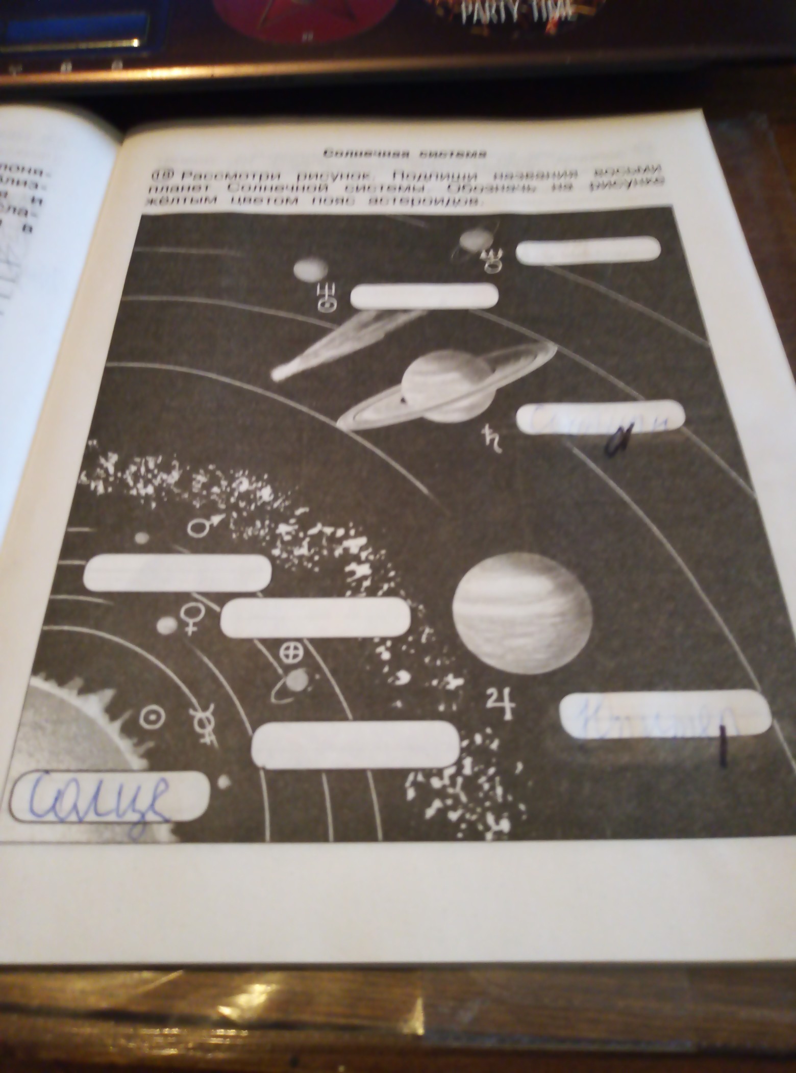 Рассмотри рисунок Подпиши названия 8 планет Солнечной системы обозначены на рисунке желтым цветом пояс астероидов