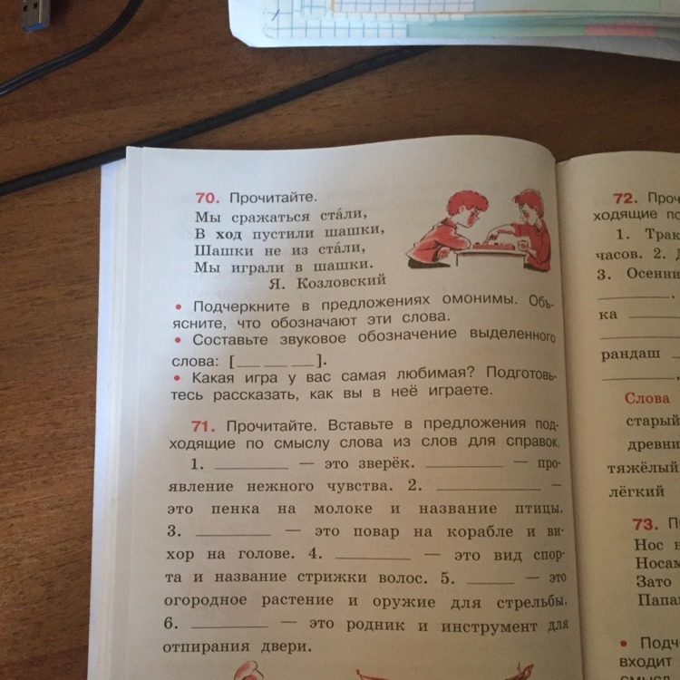1 ласка, 2 пеночка, 3 кок, 4 бокс, 5 лук, 6 ключ