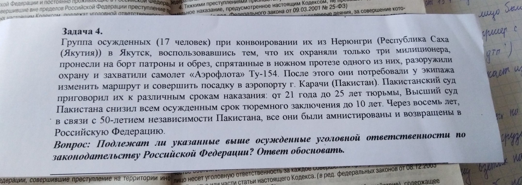 Указанные лица совершили преступление, предусмотренное пунктами "а", "г" части 1 статьи 211 УК РФ, а именно угон судна воздушного транспорта, совершенный группой лиц по предварительному сговору с использованием оружия.
