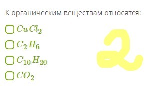 2. К органическим веществам относятся: C2H6 и C10H20.