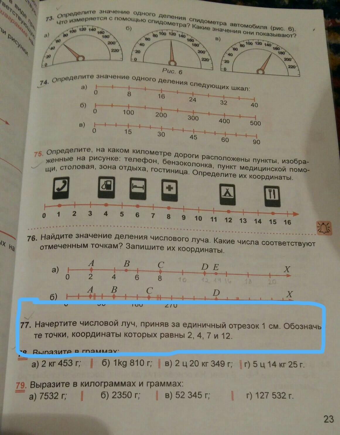Вот, у числового луча указано направление , единичный отрезок м указанные точки
