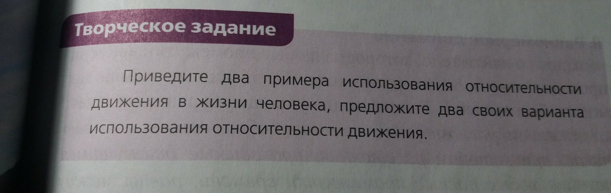 1)Пассажир в автобусе. Относительно автобуса он находится в состоянии покоя, а относительно Земли он движется. 2)Мы стоим на земле. Относительно земли мы не движемся, в то же время относительно солнца перемещаемся с колоссальной скоростью.