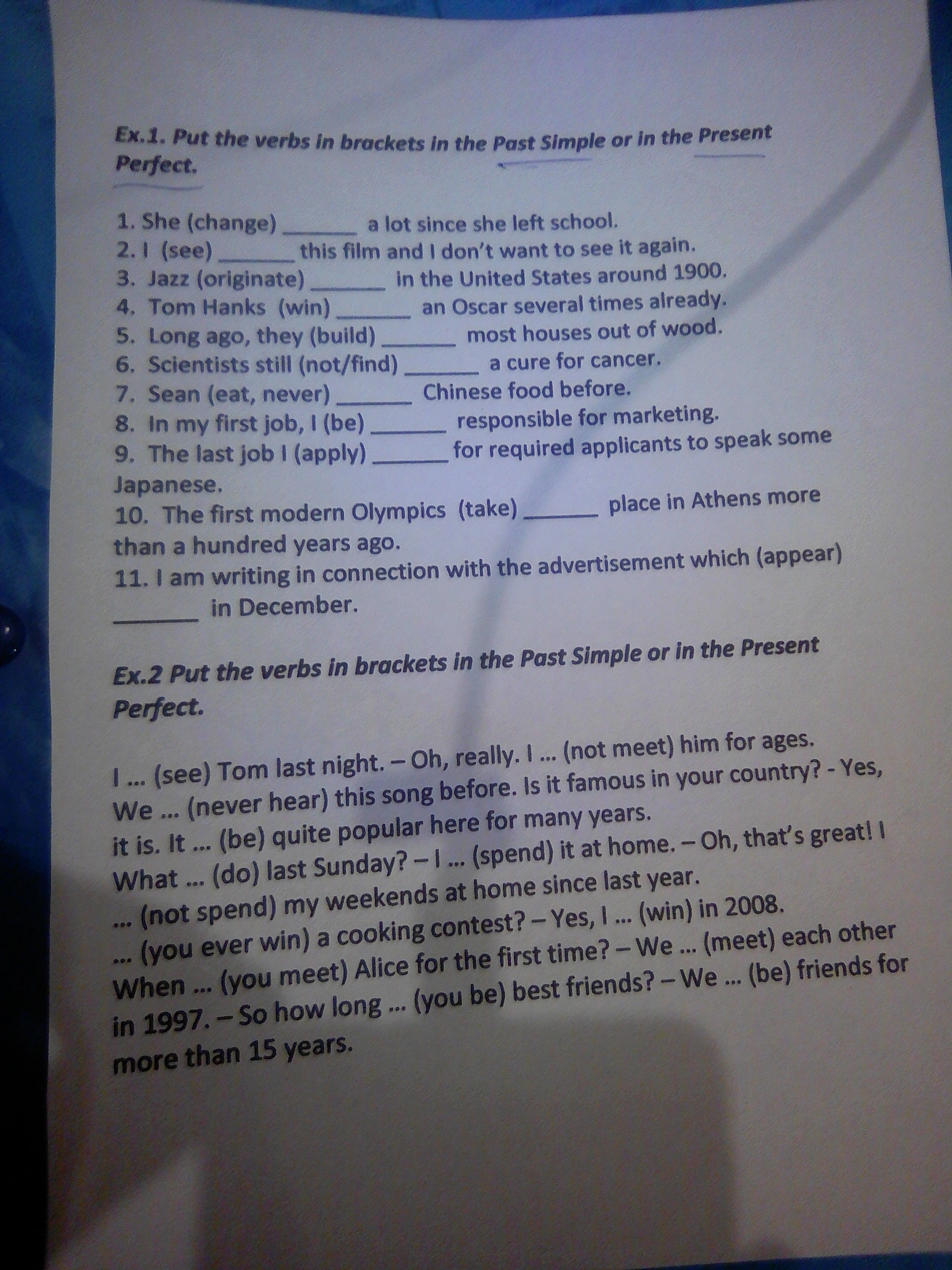 Saw, haven't met, have never heard, has been, did you do, spent, haven't spent, have you ever won, won, did you meet, met, have you been, have been