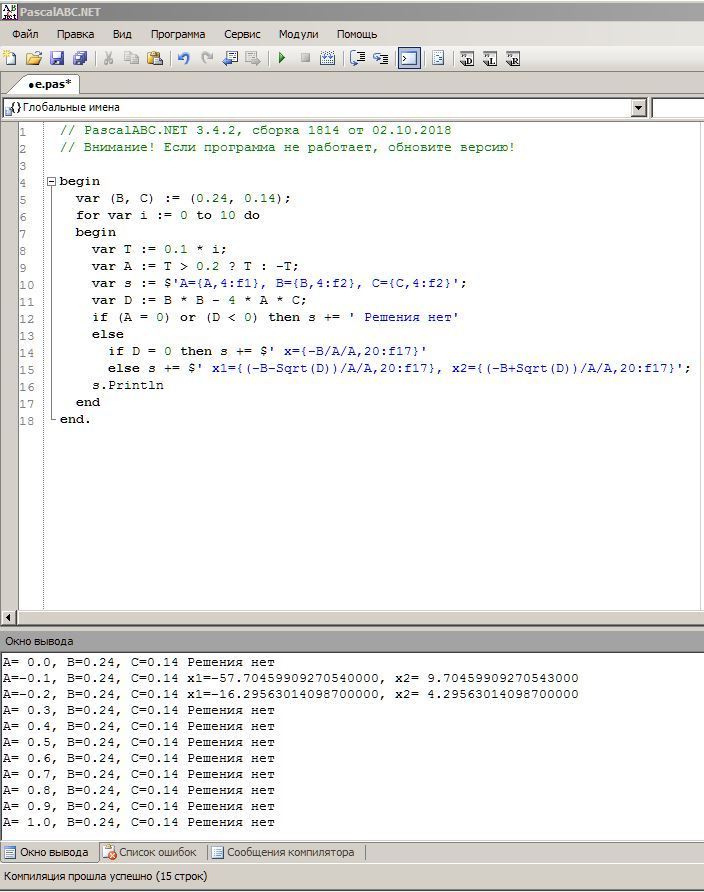 if (A = 0) or (D < 0) then s += ' Решения нет'