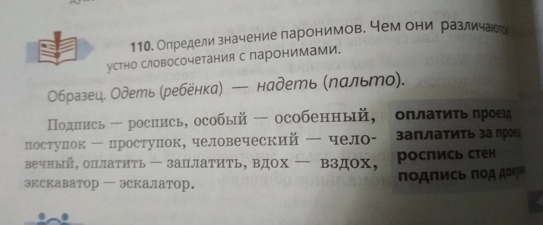 подпись под фото - роспись на документе. особый случай - особенный человек. умный поступок - Я совершил проступок . человеческий мозг - человечный поступок. оплатить счет - заплатить за билет. вдох свежего воздуха - вздох от перегрузки. экскаватор для стройки- эскалатор в метро.