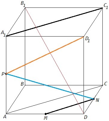 Дан куб-ABCDA1B1C1D1,CN=ND,M∈AD,AM=MD,N∈CD,P∈AA1