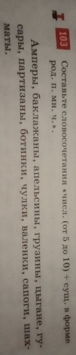 #103. Составьте словочитание <<числ.(от 5 до 10) +сущ. в форме род. п. мн. ч.>>