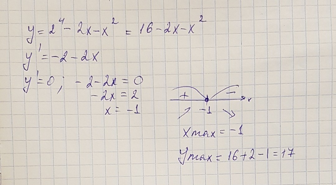 Найти наибольшее значение функции y=2^4-2x-x^2