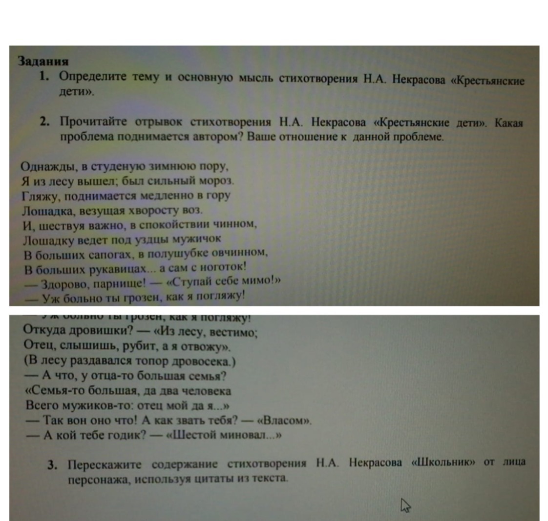 в произведении "крестьянские дети" рассматривается следующая проблема. в семье имеется всего два мужика:отец и сын. вот им и приходится всю мужскую работу делать вдвоем. парнишка хоть и маленький а все равно помогает,трудится. если бы шестилетний мальчик не помогал отцу , ему(папе) было бы очень трудно. вот он и ведет лошадь и отвозит дровишки.