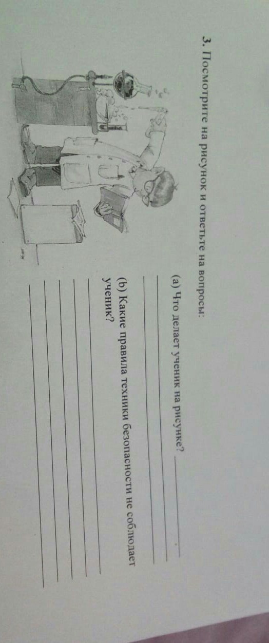 Посмотрите на рисунок и ответьте на вопросы : (а) Что делает ученик на рисунке? ;