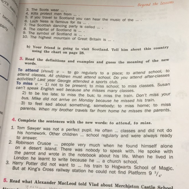 3. to attend - посещать; посещать школу, посещать лекции. Все дети должны посещать школу/ходить в школу. Ты ходишь на доп. занятия после уроков? В прошлом году Георг(Джордж) посещал спортивный клуб