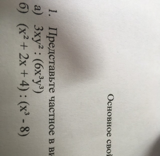 а). 3xy^2/6x^3y^3=1/2x^2y(сокращаем числитель и знаменатель на 3xy^2). б). (x^2+2x+4)/(x^3-8)=(x^2+2x+4)/(x-2)*(x^2+2x+4)=1/(x-2). ^- это степень.