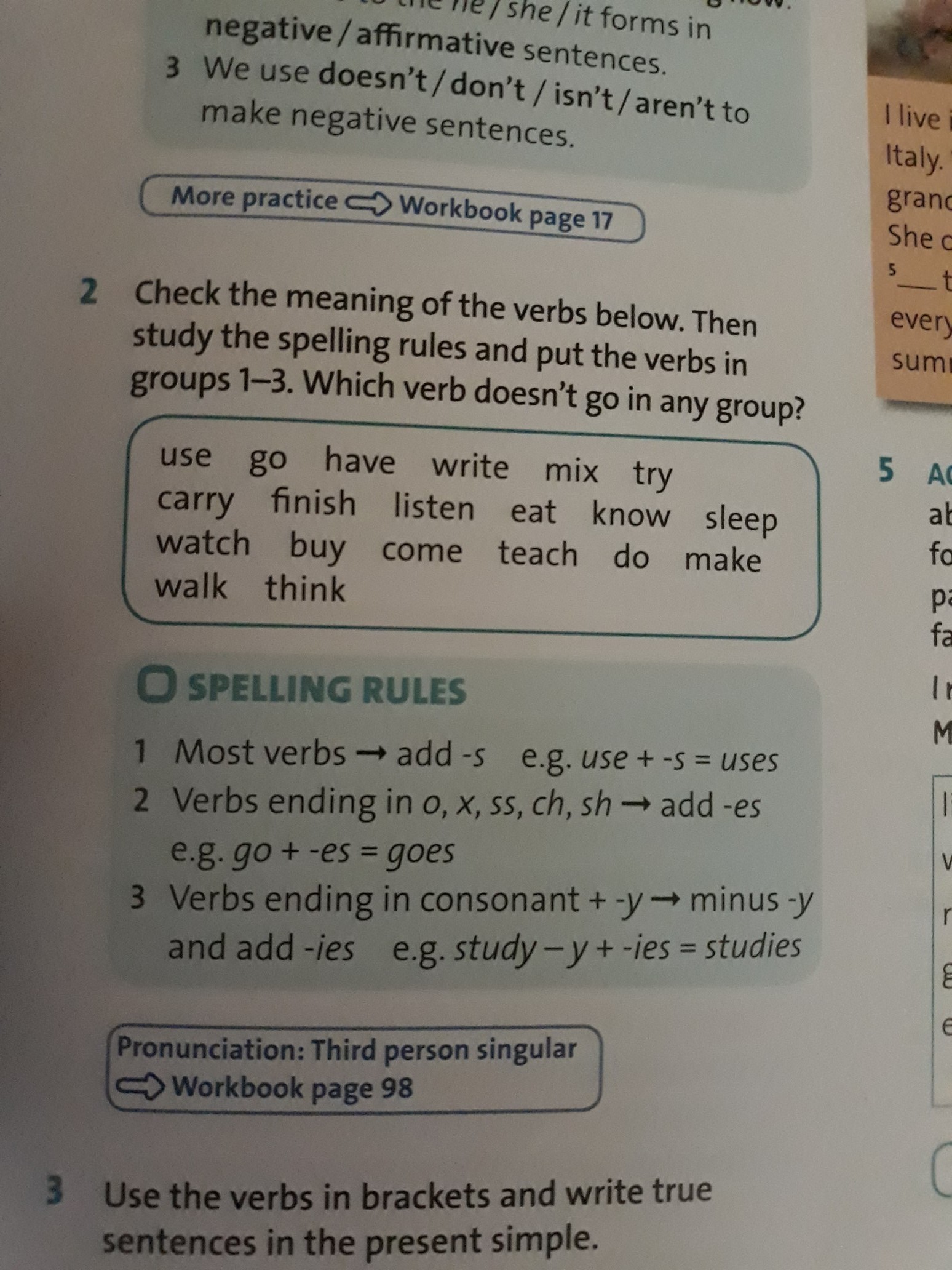 -s)-use, listen,eat,know,sleep,come,make,walk,think,buy