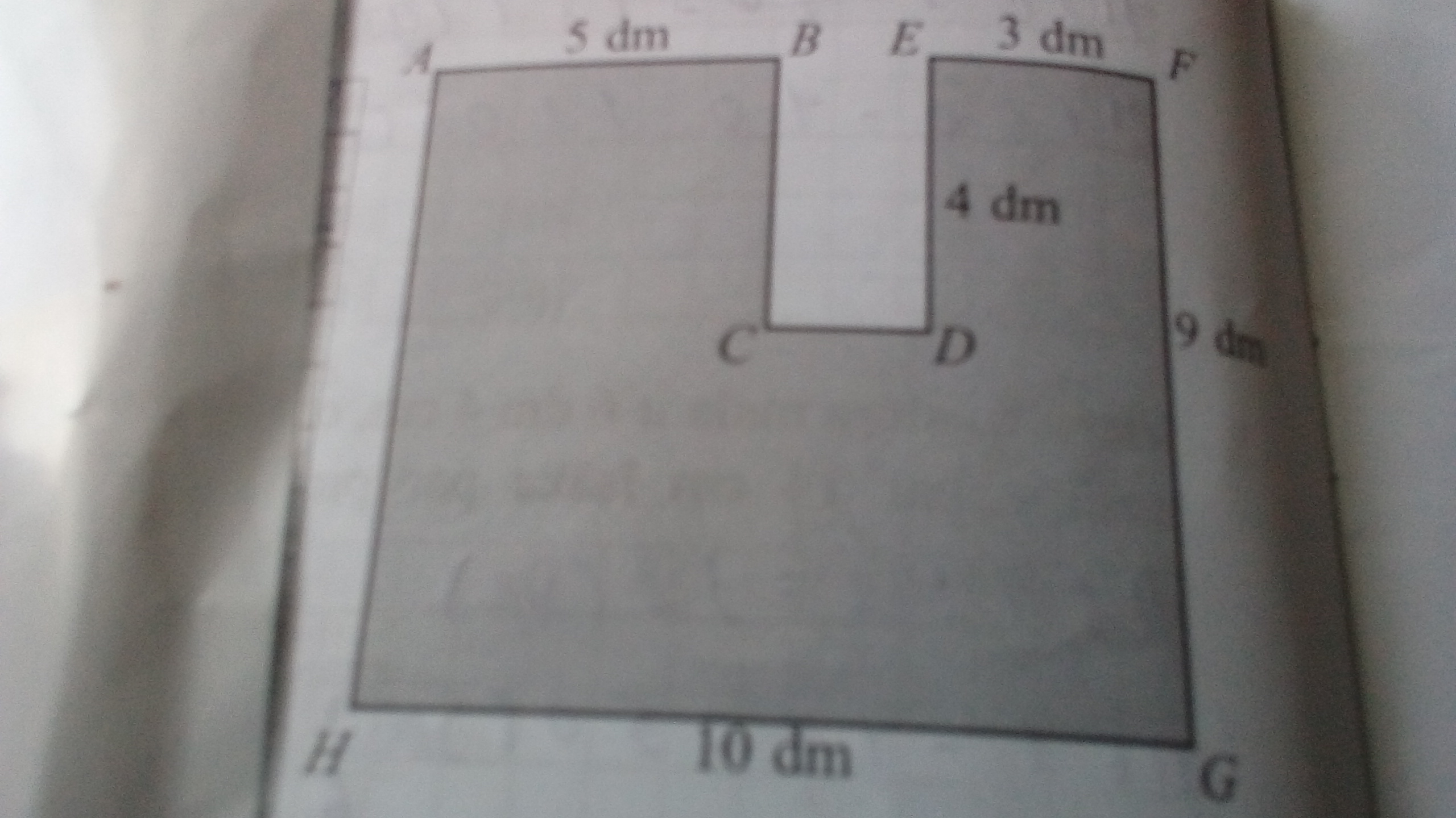 Находим длину стороны CD: 10 - (5 + 3) = 10 - 8 = 2 дм