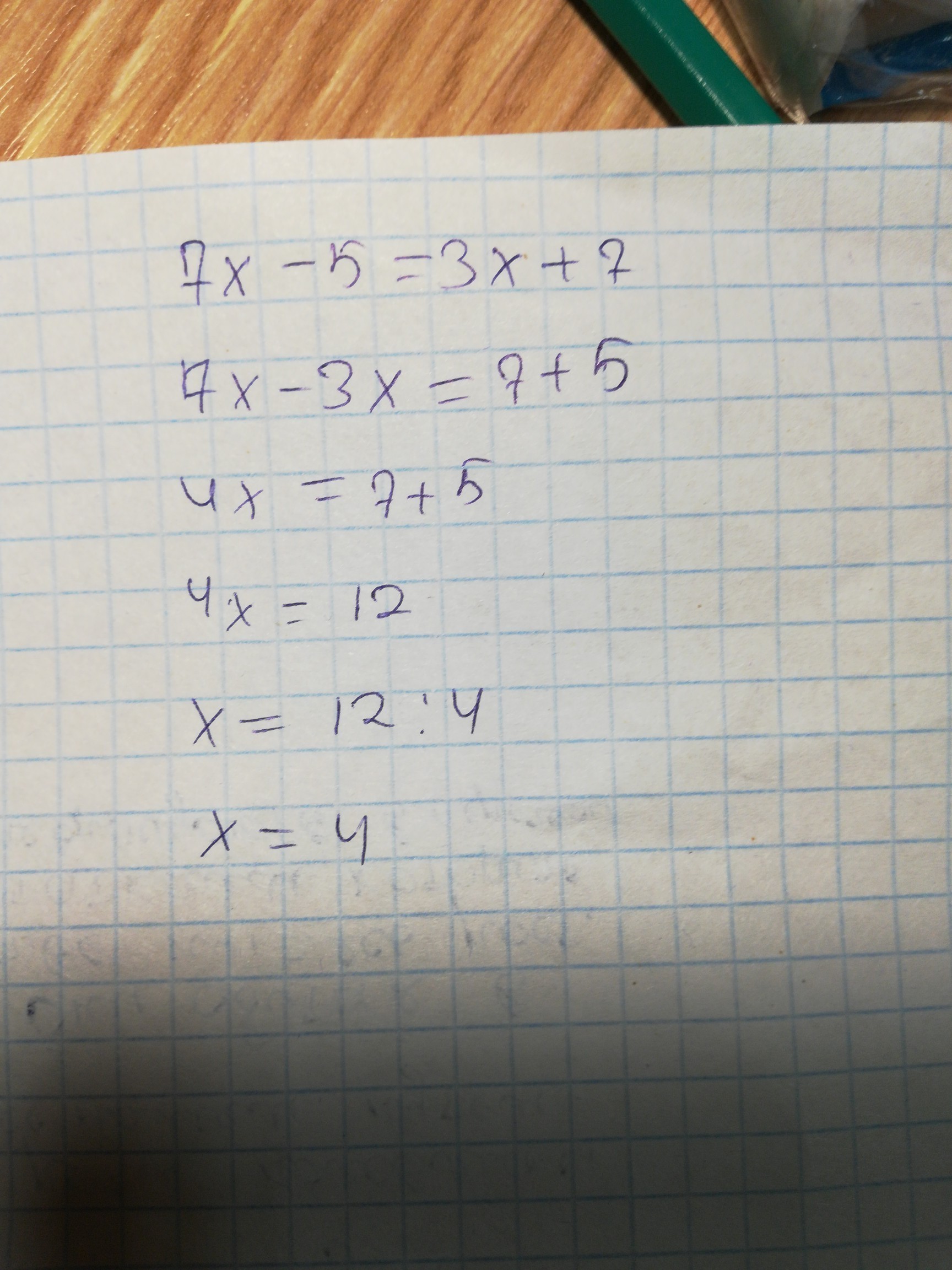 7х-3х=7+5, 4х=12, х=3 -ответ