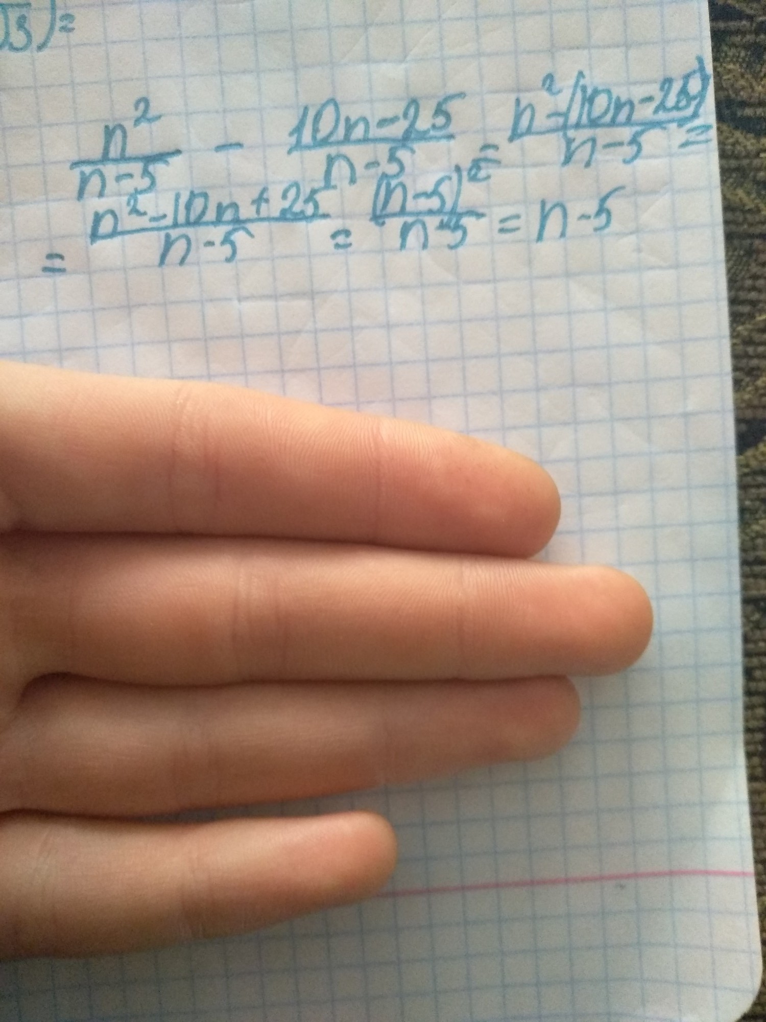 (n²-10n-25)/n-5 =(n-5)²)/n-5=n-5