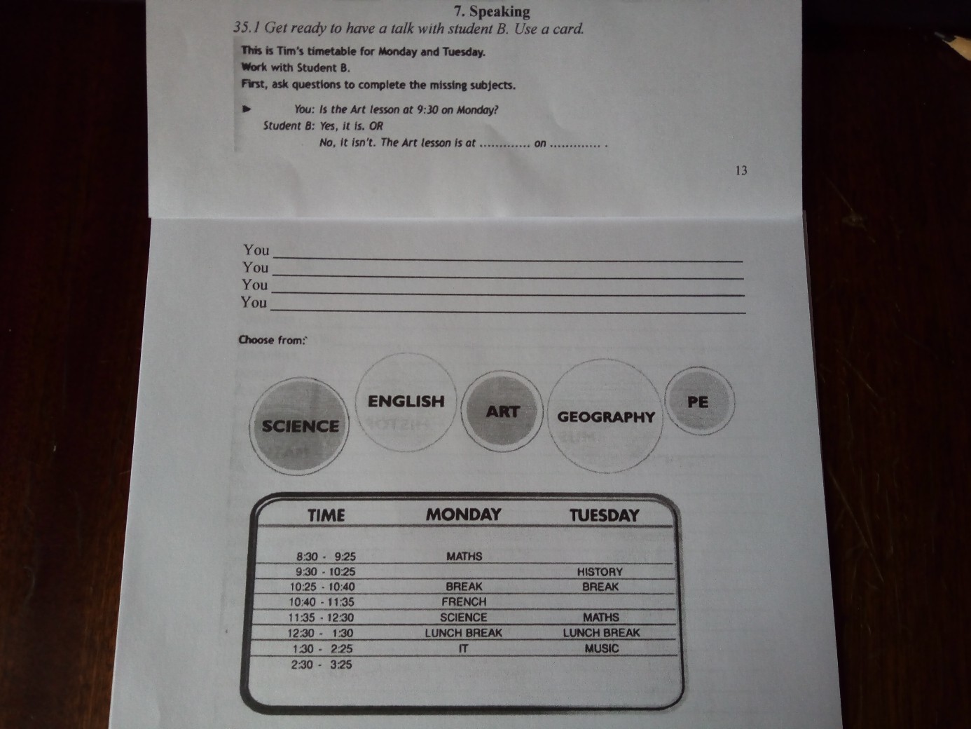 Is the Maths lesson at 11:35 on Tuesday ? Yes,it is.