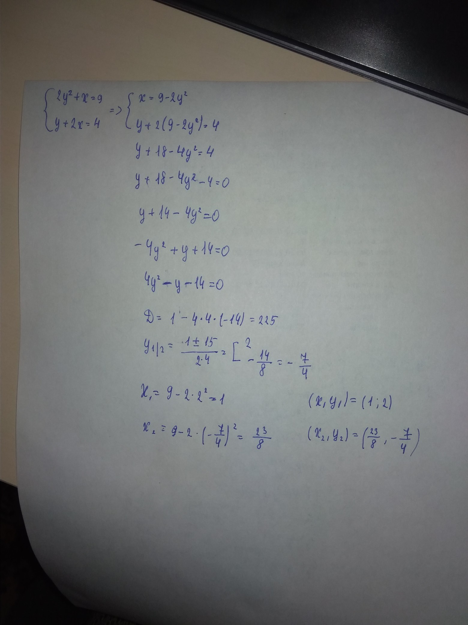 Ответ будет таким (x1, y1) =(1, 2) (x2, y2) =(23/8,-7/4)