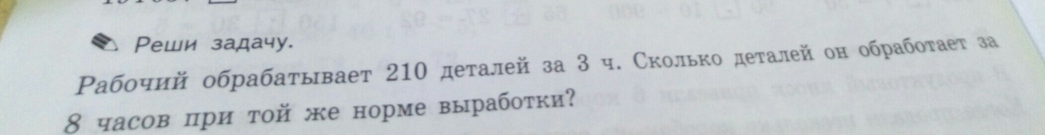 1) 210:3 = 70 деталей рабочий обрабатывает в час