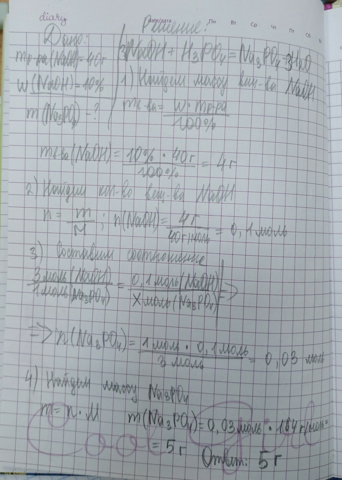 Вычислите массу соли образовавшиеся при взаимодействии 40г 10% но раствора идрлксида натрия с раствором фосфорной кислоты