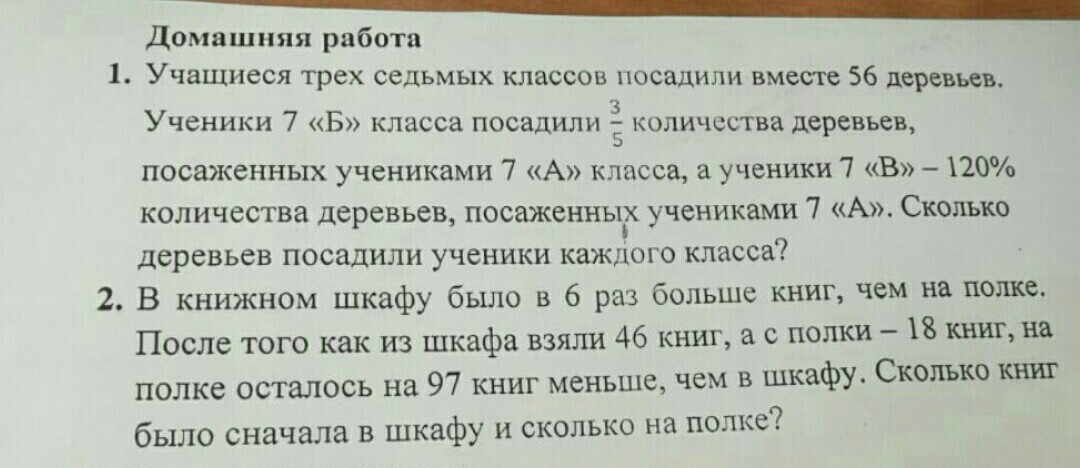 20дер-ев посадил 7А кл, 20·3/5=12(дер) посадил 7Б кл.,20·1,2=24(дер) посадил 7В кл