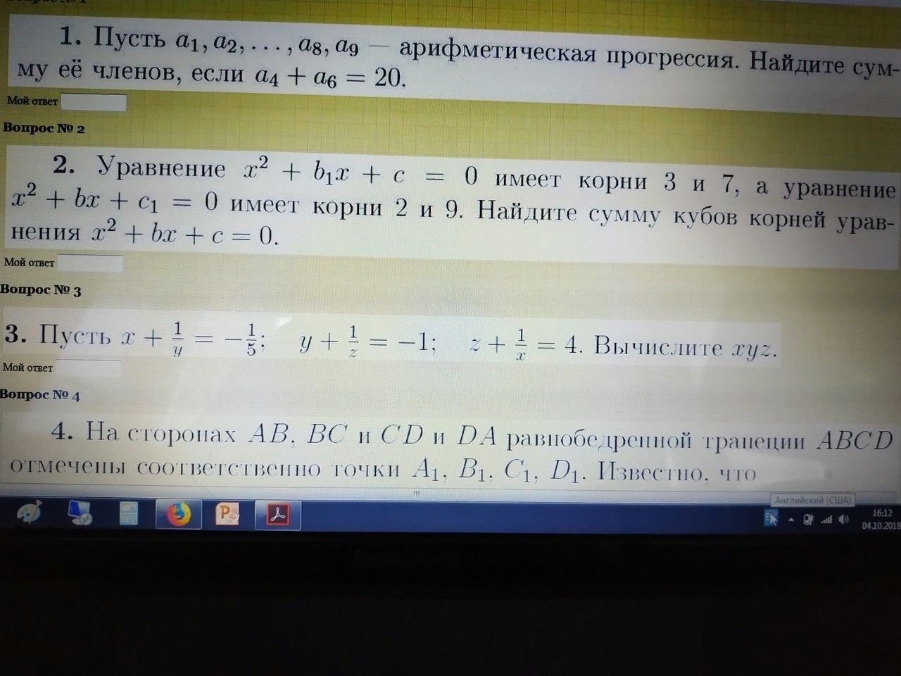 1) Узнаем все члены с помощью подбора a4(8)+a6(12)=20