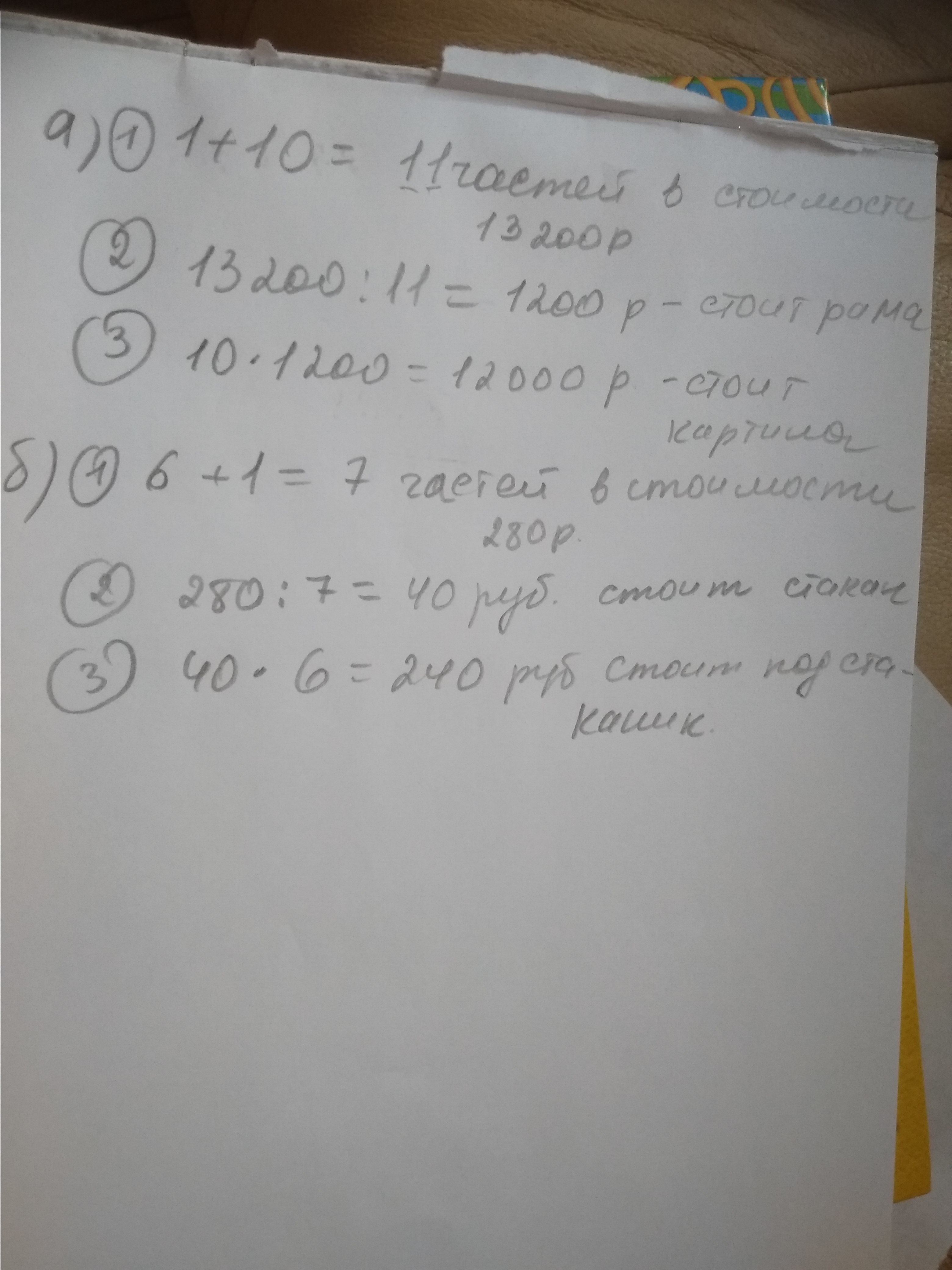 стакан стоит 40 (т.к. в 6 раз дешевле, то есть меньше)