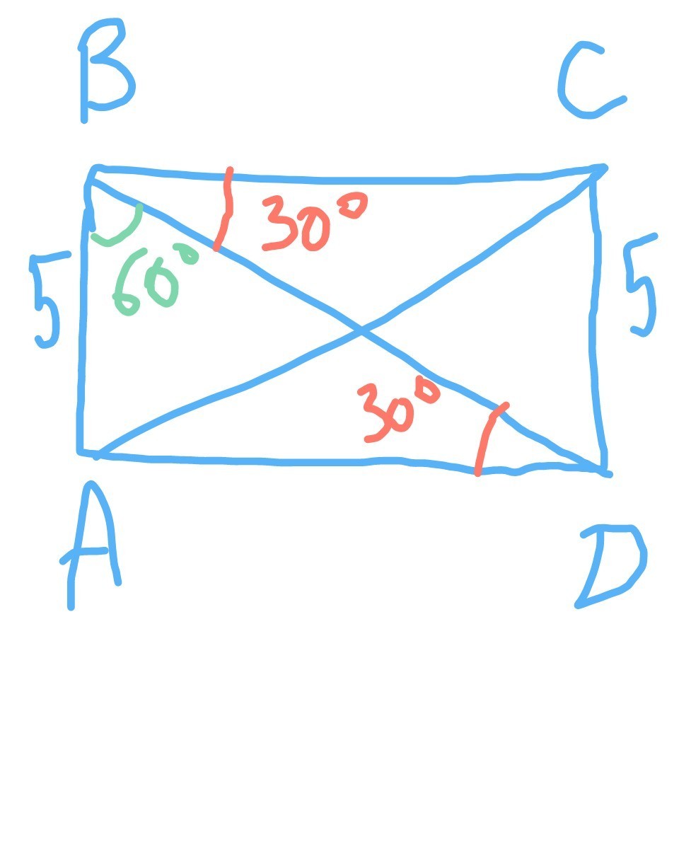 В прямоугольнике диагональ делит угол в отношении 1:2,меньшая его сторона равна 5. Найдите диагональ данного прямоугольника