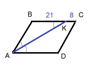 ∠BAK=∠ВKA ⇒Δ АВК - равнобедренный ⇒ АВ=ВК=21