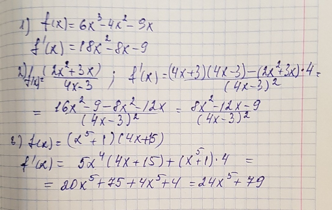 1. f(x)=6x^3-4x^2-9x найти производную от деления след функции