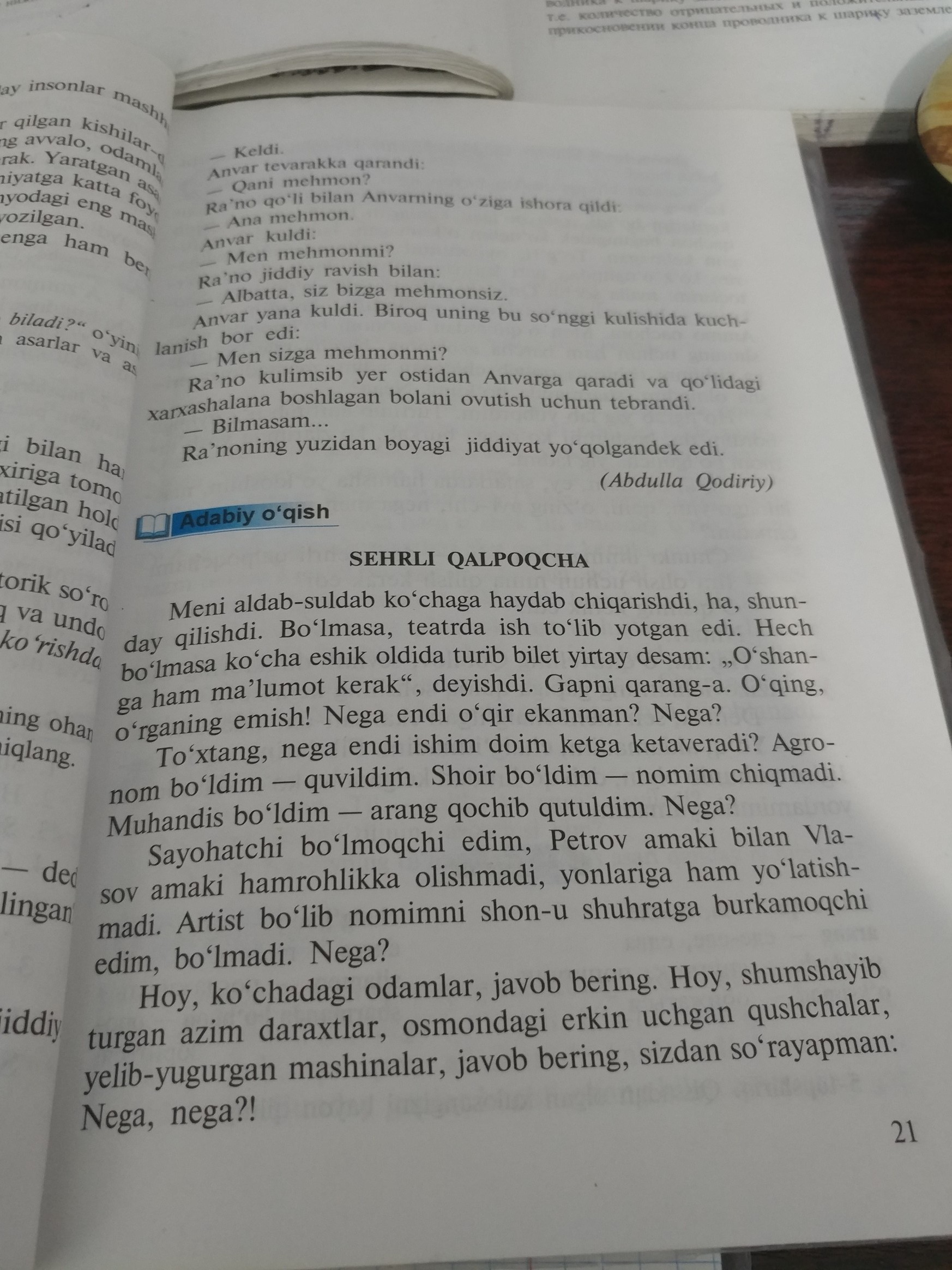 Меня обманули и хитро прогнали на улицу,да! так и сделали.А так в театре было много дел.Хотя бы на улице возле входа я хотел порвать билет,ему тоже нужна информация сказали.-Посмотрите что он говорит.-Читайте!Учитесь,говорит!-Почему же теперь я должен учится?Почему?Стойте!почему мои дела всегда идут наоборот!вот например я стал аграном ничего не вышло,стал поэтом!Но всеровно никто не читал!Учителем был! спалили,но всё таки удалось сбежать!почему???Хотел стать туристом но Петров дядя и Владислав дядя не взяли,даже встретится мной не хотели!Хотел стать артистом, хотел стать знаменитым но не получилось!ну почему????ей люди отвечайте ну почему???ей деревья!ей птицы летающие на небе,ей скоростные машинки!отвечайте!Вас спрашиваю почему???