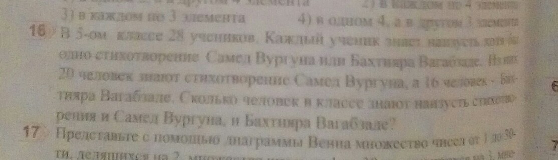 чтобы это найти нужно (20+16)-28=8, значит восемь человек знают оба стиха
