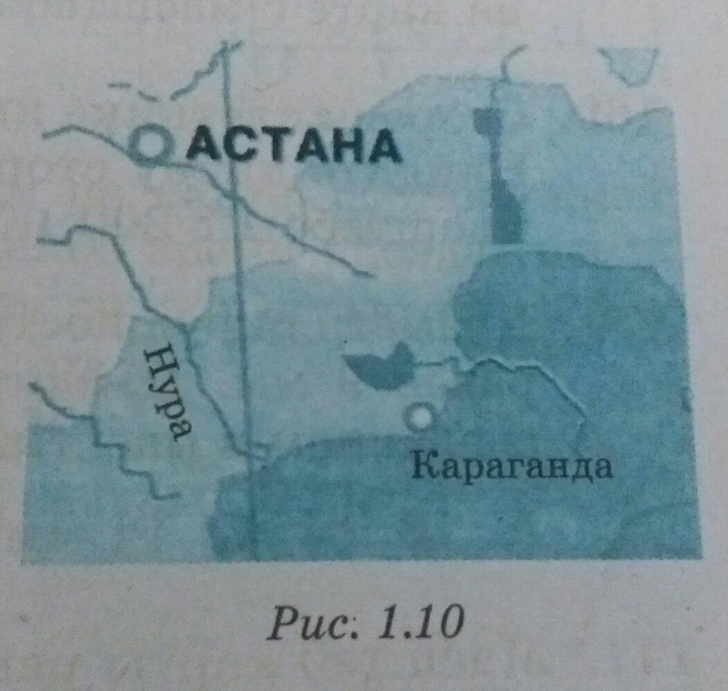 измерьте на карте рис.1.10. длину отрезка, соединяющего города Астана и Караганда. масштаб карты1:7000000. вычислите расстояние между этими городами на местности