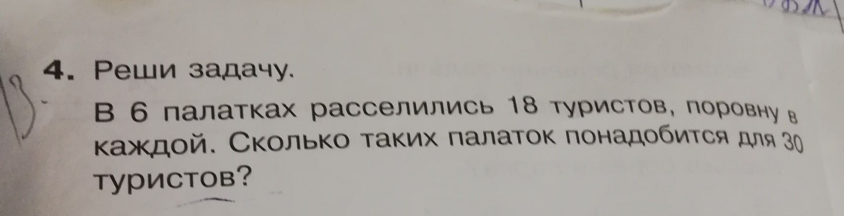 В 6 палатках расселились 18 туристов, поровну в каждой. Сколько таких палаток понадобиться для 30 туристов?
