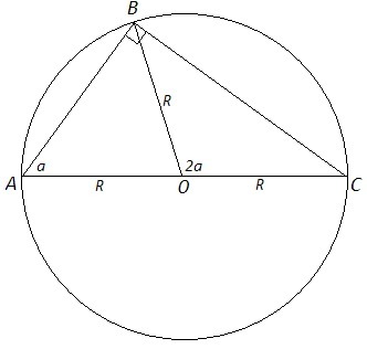 Центральный угол вдвое больше вписанного, опирающегося на ту же дугу, ∠BOC=2∠BAC=2a.