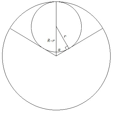 Sк/Sс= пr^2 : пR^2*2a/360 = (r/R)^2 *180/a = (sina/(sina+1))^2 *180/a