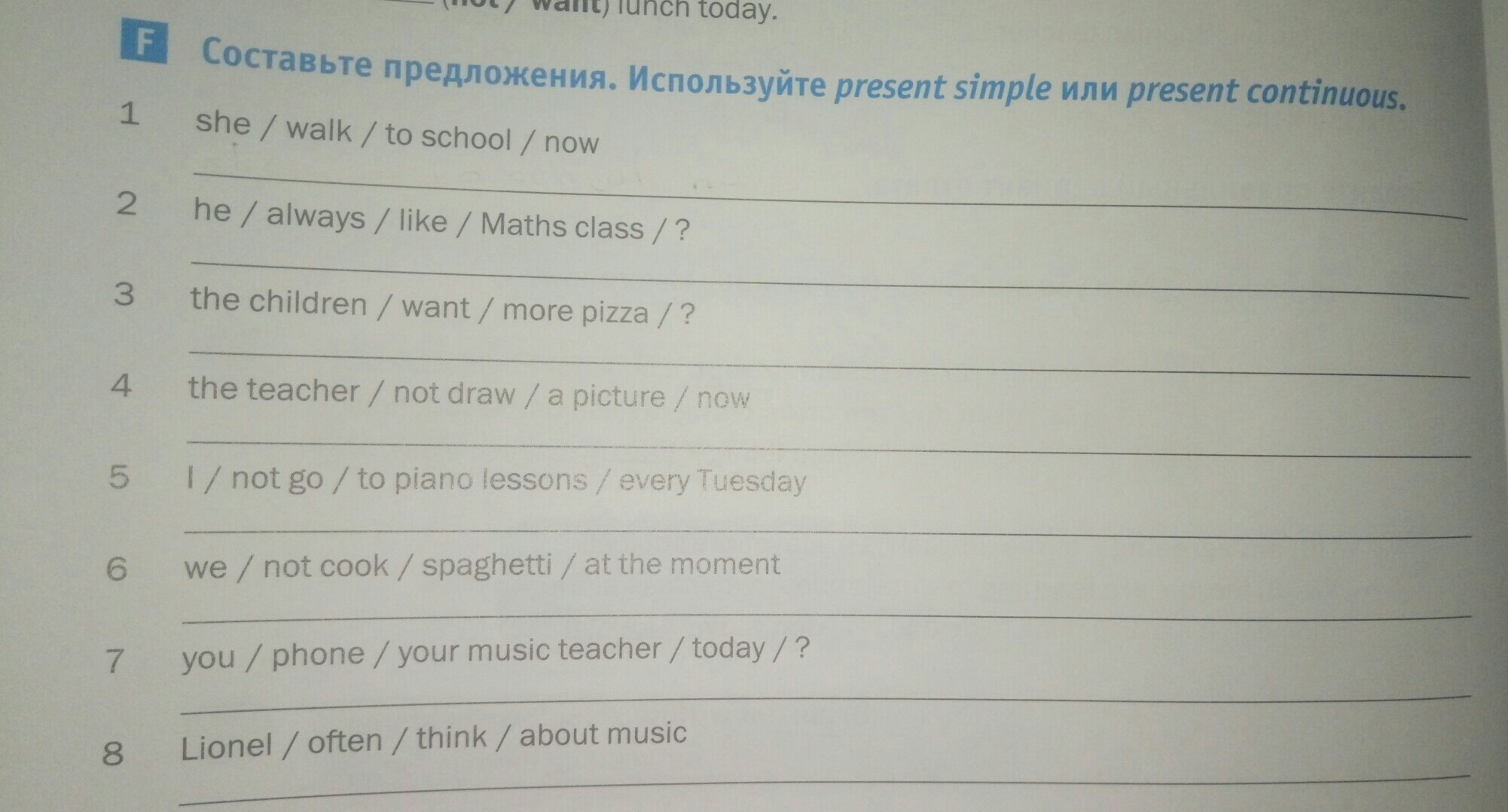 7. Have you phone your music teacher today?