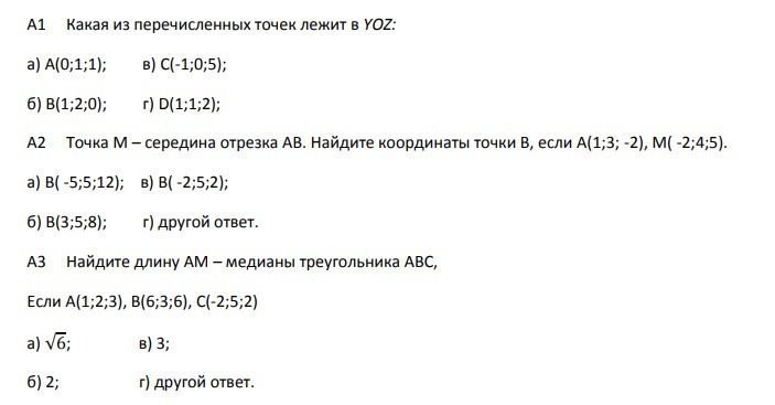 А2) Если М середина АВ, то координаты М = (А+В)/2. Тогда