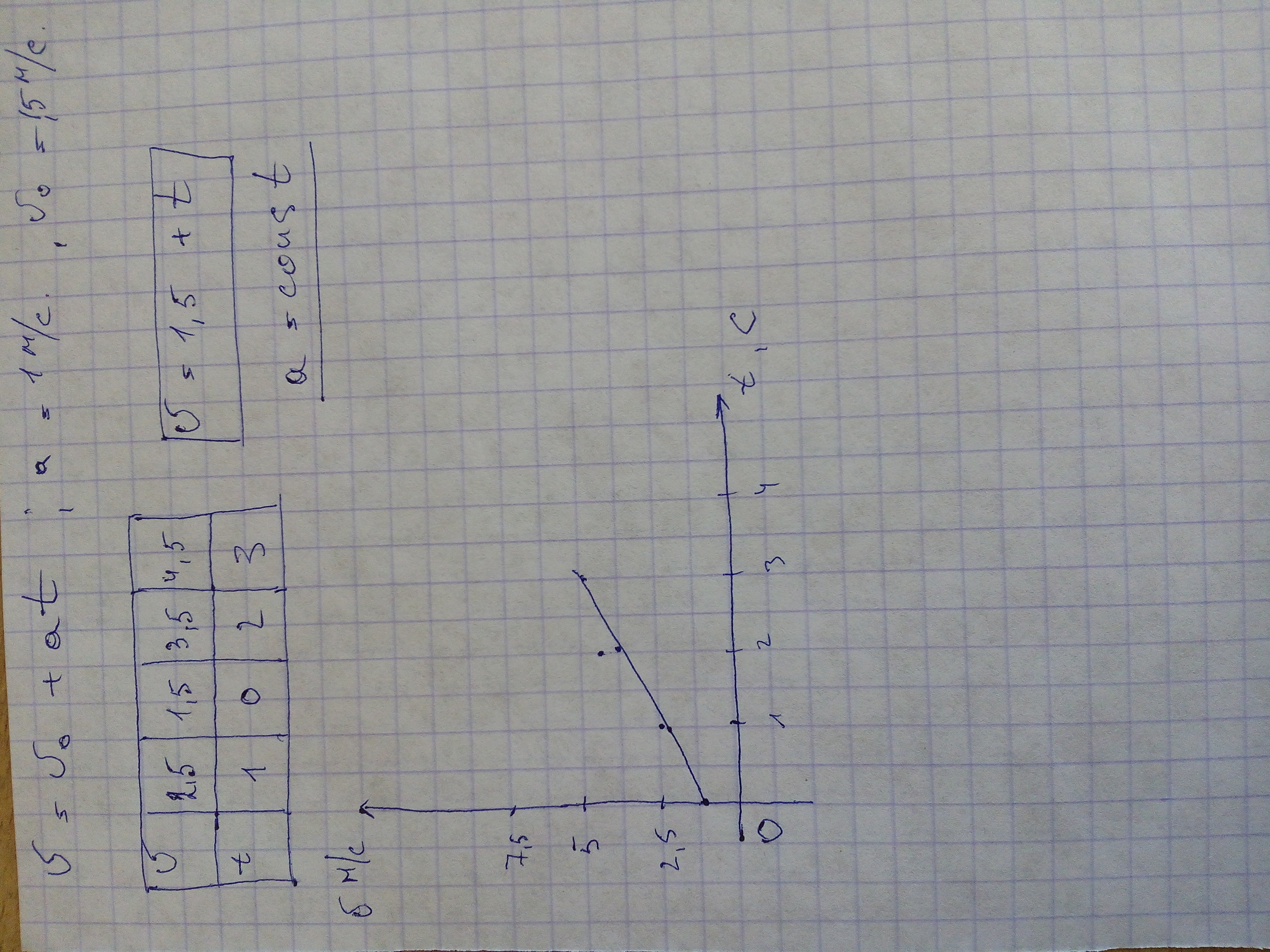 записать уравнение скорости и построить график зависимости u (t) если начальная скорость 1,5м/с а ускарение 1м/с