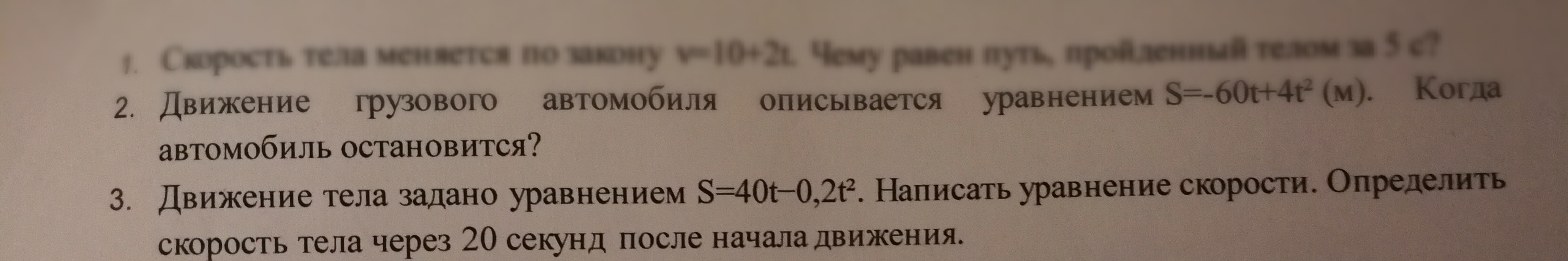 3. уравнение скорости V=40-0.4*t. При t=20 V=32