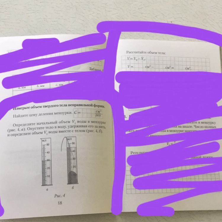 V=Vпр сложить с дельтойV получается V=30+(-)27,5 все это в кубе получается если складываем будет 57,5мл в кубе,а если вычитаем то 2,5 мл в кубе. Как ищется цена деления мензурки?