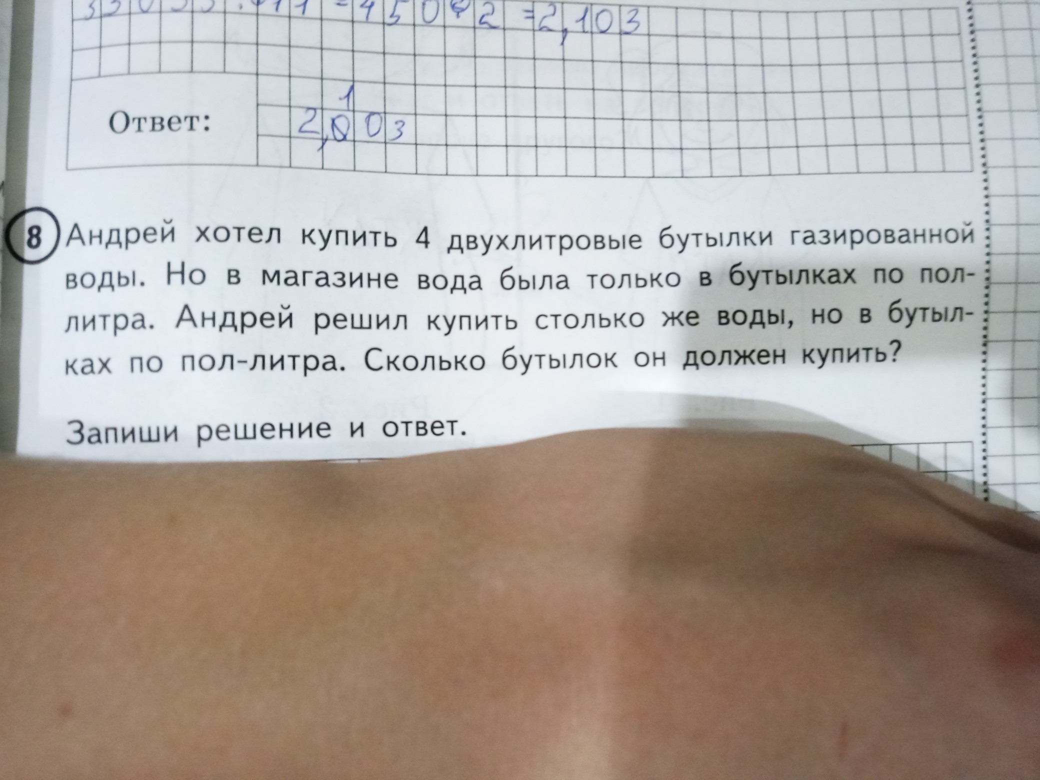Ответ: Андрей должен купить 16 бутылок по пол-литра.