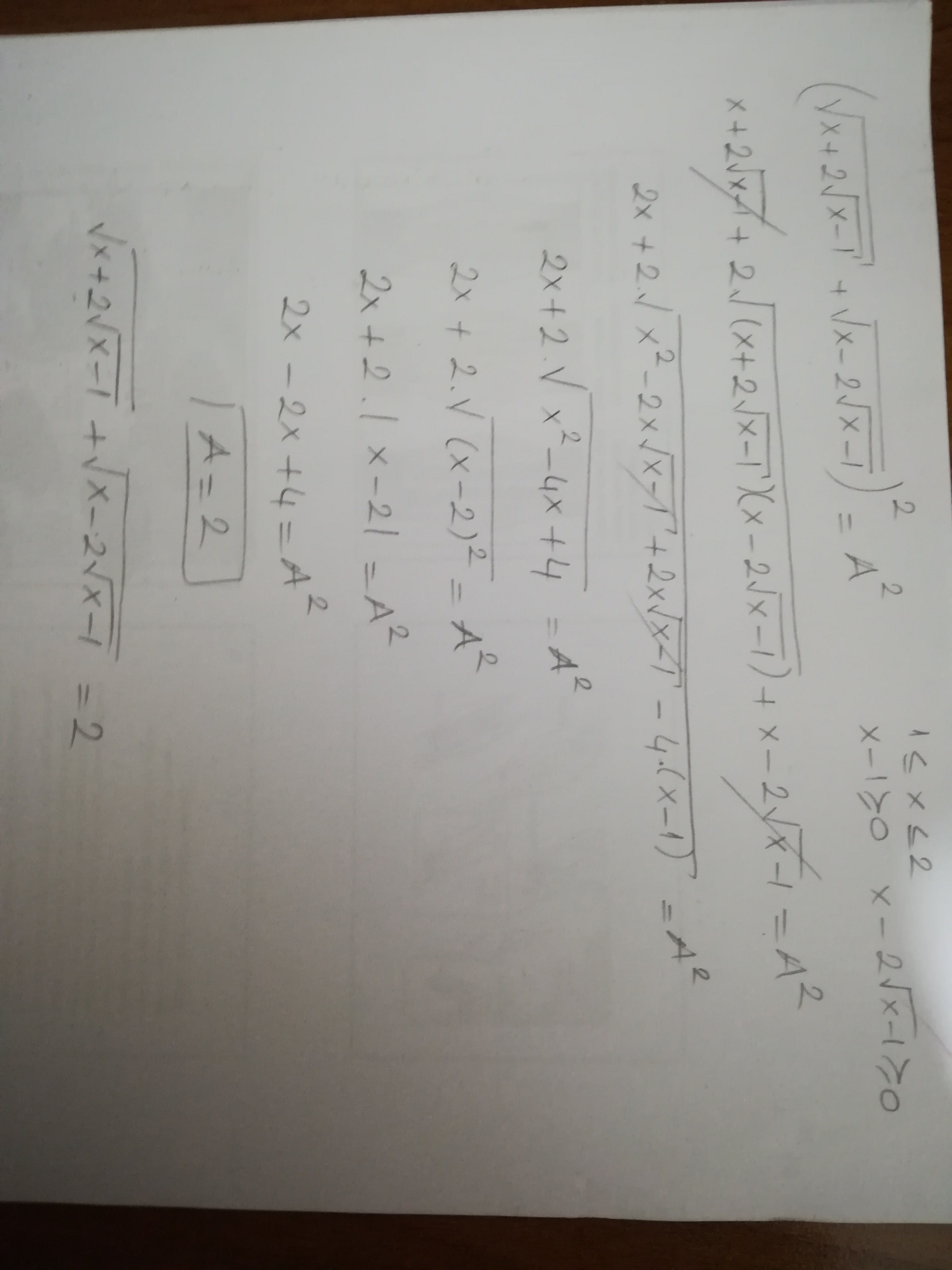 √[√(x -1) + 1]² + √[ √(x -1) - 1] ² = |√(x -1) + 1 | + | √(x -1) - 1 | = √(x -1) + 1 -(√(x -1) - 1) =2.